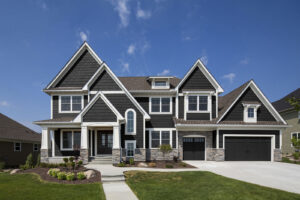 Each siding profile has its own look and thoughtfully using them in the right spots can make a big impact. Often, we see this technique used with a change of style in a gable for an accent that draws the eyes up. Other architectural details to highlight include around the front entry door, bump outs, dormers, or creating a break halfway up a story of the home.