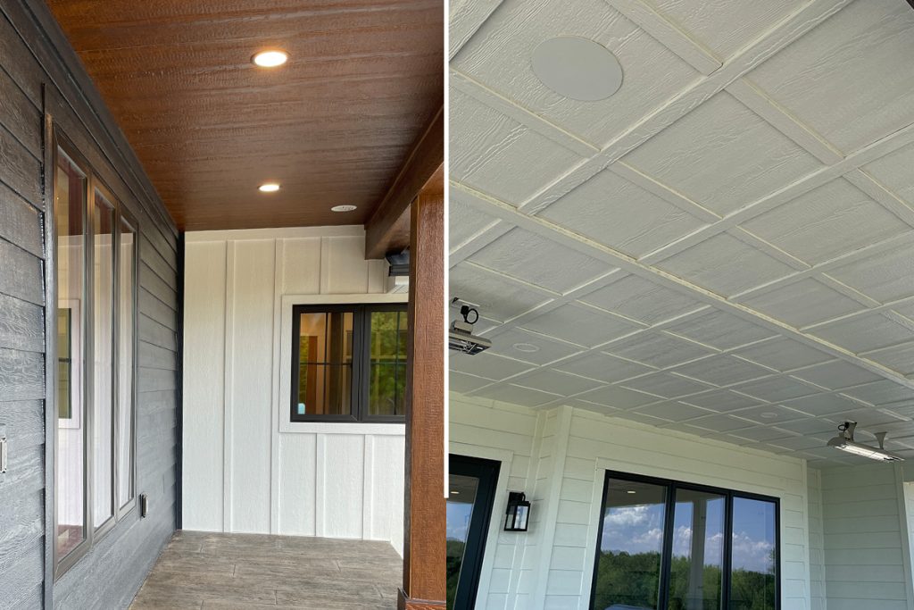 Porch ceilings are often over-looked, but they provide a great spot to add additional details. And adding ceiling accents draws the eyes upwards, exciting guests about entering your home or creating an oasis to relax outside after a long day. With paneling and batten strips, this design idea is easy to make patterns or keep it simple with just paneling. While using a solid color is common, using a DuoBlend to add a touch of natural wood without worrying about the upkeep is a great way to bring in the look of a mixed material.