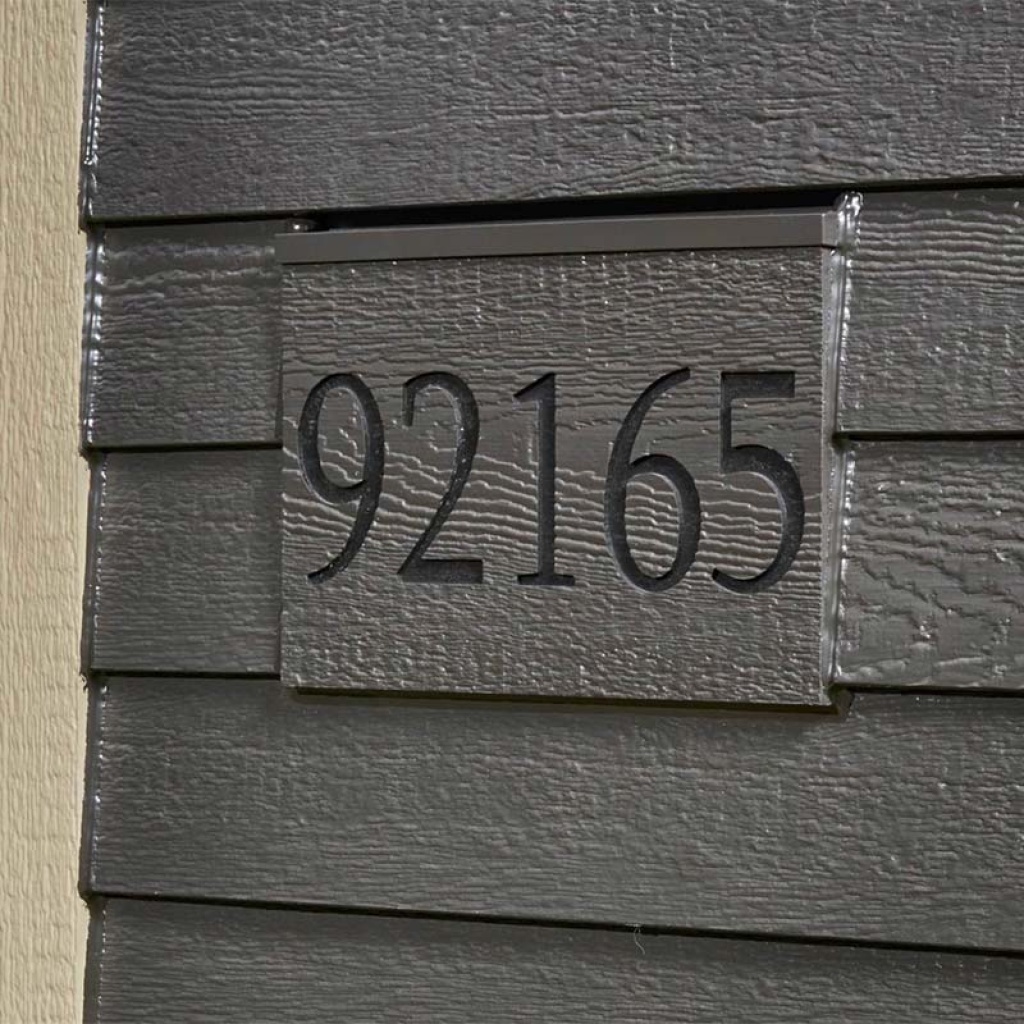 House numbers are an important exterior element. This mount block matches the siding and can feature up to six numbers in either black or white.