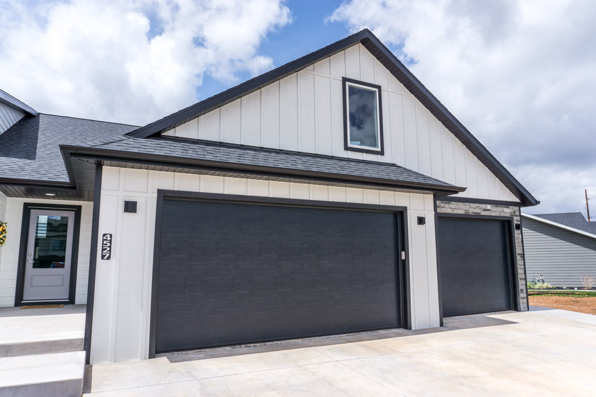 This new home is the focal point of the neighborhood featuring RigidStack lap and Board & Batten siding in White. The sleek architectural design is highlighted with Onyx trim for a crisp look.