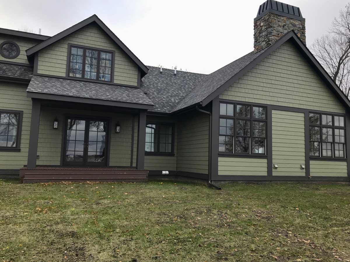 The perfect family retreat! This home features RigidStack lap siding and Straight Edge RigidShakes in Olive. The different profiles add texture to the house and complement the stone chimney perfectly.