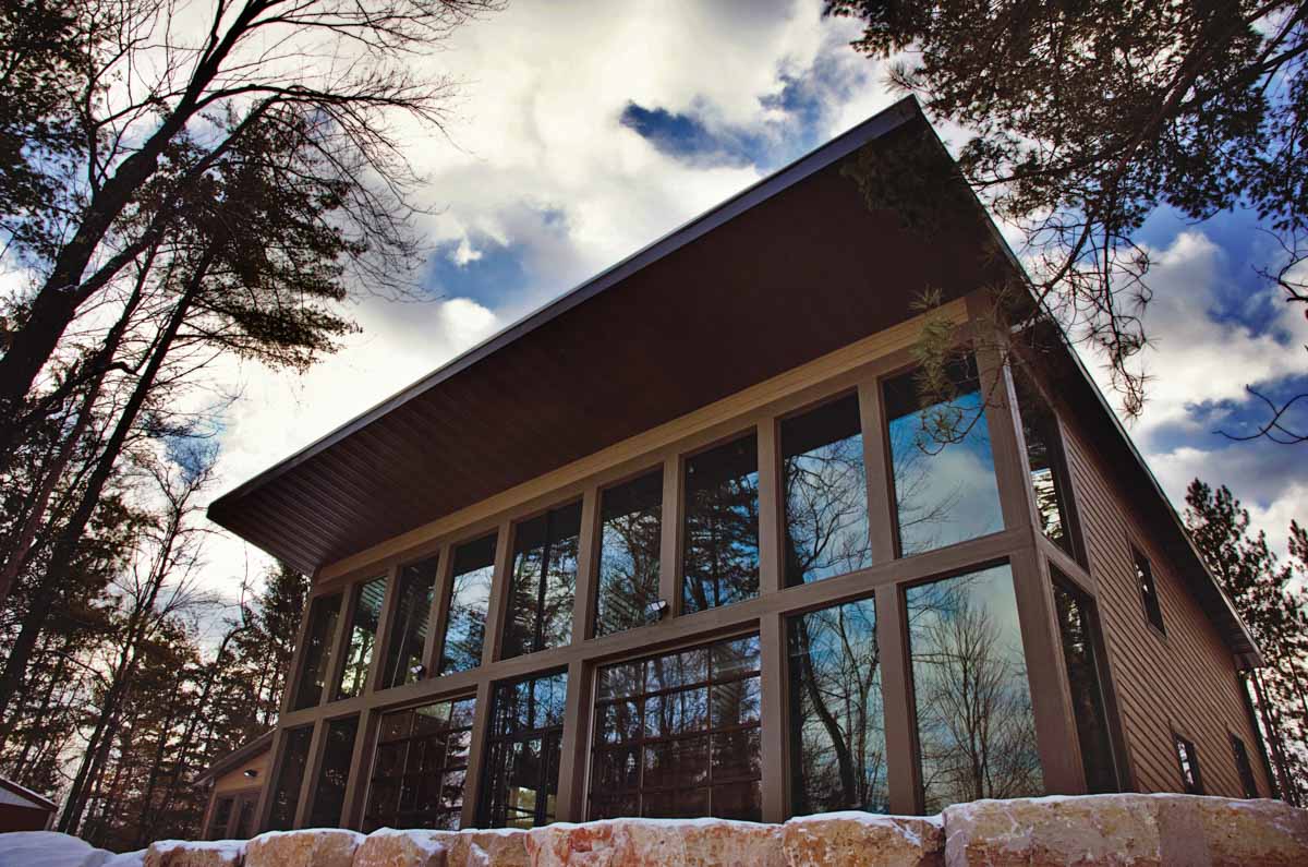 A unique home designed with the principles of biophilic design in mind, to create a one-of-a-kind modern cabin. RigidStack lap siding in French Gray combines with Seal trim for the perfect cabin-in-the-woods style.