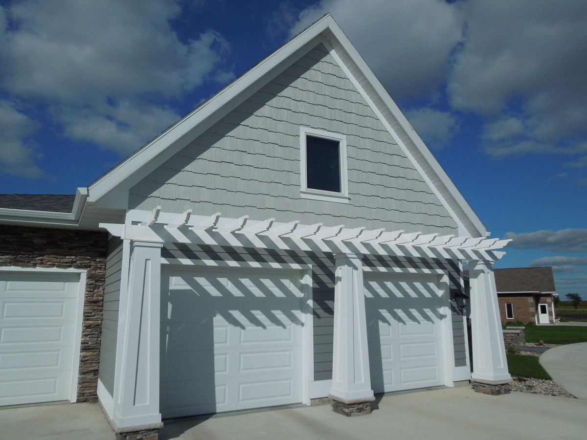 Monochromatic color palette for a stunning look! This home features RigidStack lap siding in Pelican, Staggered Edge RigidShakes in Light Gray, and White trim accents.