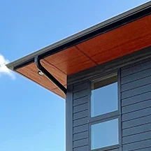 Create a dramatic effect by finishing your overhangs, porch, and ceilings with the same woodgrain look.