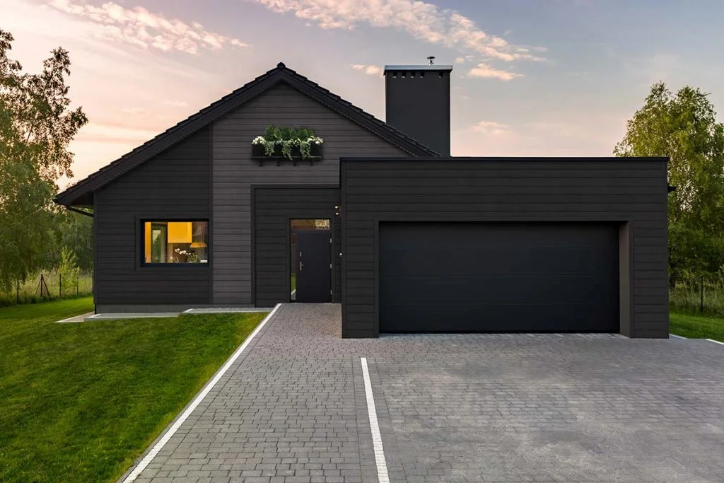 Style Tip: Black siding makes a strong visual statement on its own, so minimize your accent choices for a polished look.