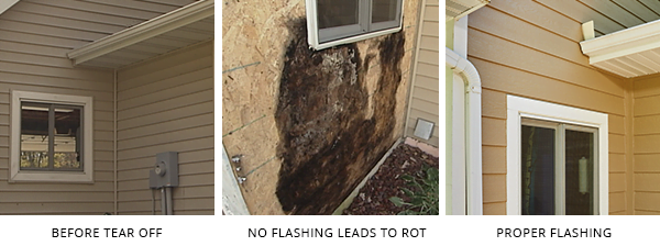 Homeowner Neil was excited to replace old vinyl siding with new Diamond Kote siding. Upon the removal of vinyl, the contractors discovered mold and rot under one of the windows, causing an unplanned expense. The cause? Improper flashing around the window and no Diverter Flashing to direct the water from the roof into the gutter and away from the siding. During the Diamond Kote install, the contractors ensured future rot prevention by installing proper weatherproofing accessories. Request that your contractor uses the complete weatherproofing package for the best defense against water penetration.